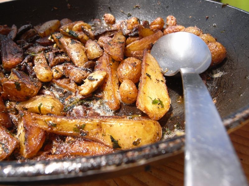 Sur la photo, une poêlée de pommes de terre avec des mousserons à se damner. Elles accompagnaient le gigot d’agneau…