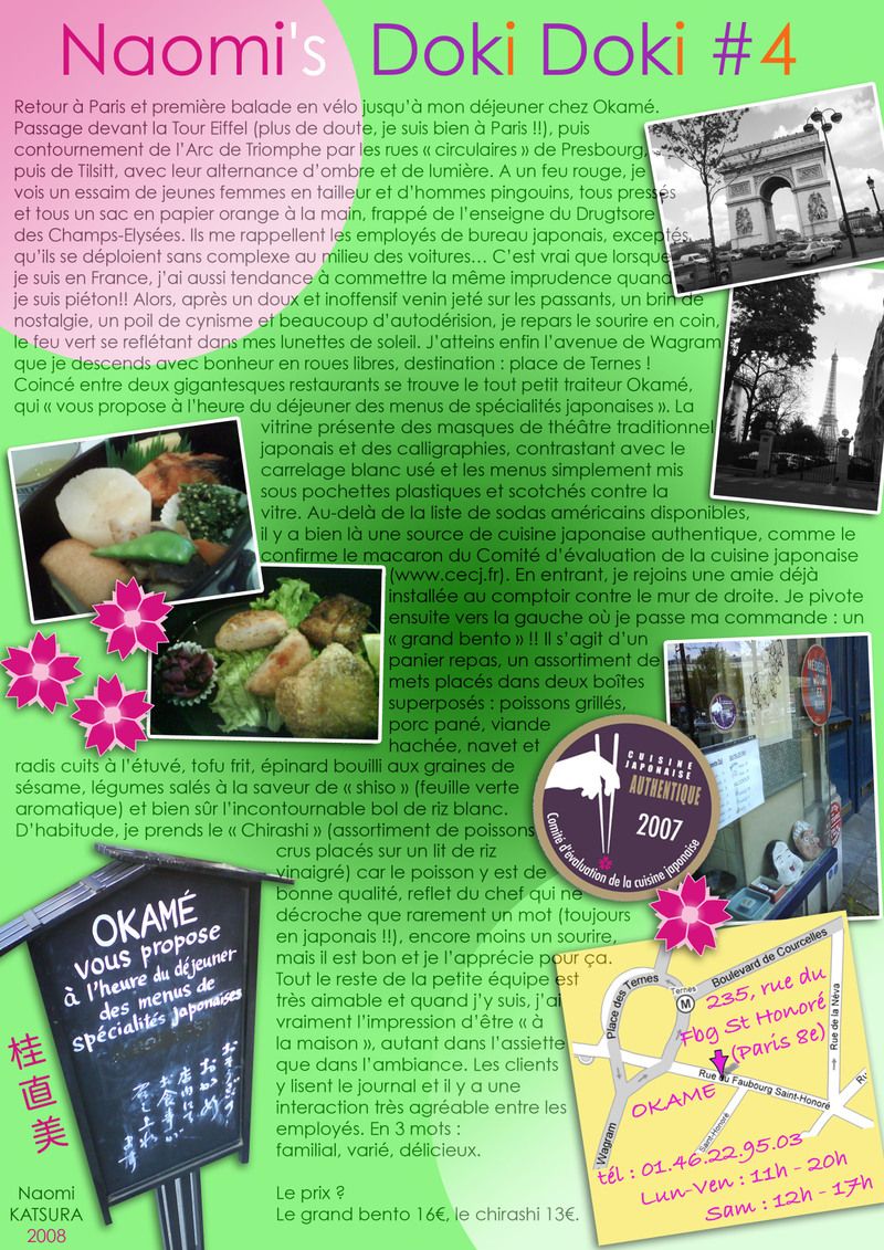 3 mai 2008 at 16 h 51 minPris du retard à vous lire ! Okamé fut ma cantine, j’adore cet endroit et l’extrême gentillesse qui y règne.