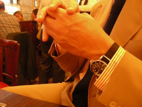Cet homme faussement nonchalant habite Rive gauche/ Il lutte pour sauvegarder le temps, ses arythmies, le rendre et l’infuser. Il ne court pas. Il flâne. Il ne frime pas. Il observe. L’avez-vous remarqué ? Il est hyper chic mais jamais apprêté, se bat pour ne pas terminer vieux garçon. Bien entendu, il appartient à ce genre de personne à qu’il est difficile de faire un cadeau. Car l’homme de French Lover se contente de "peu de choses" (quelle farce !). Des intemporels. Une chemise de chez Turnbull & Hasser (tiens…) car il est certain qu’elle ne sera pas démodée l’année prochaine. Un col roulé de chez Smedley car le French Lover aime les laines écossaises. Il aime aussi les gadgets car ils attirent sur son visage un sourire adolescent : i-pod, le dernier Leica M8, une Rolex sans froufrou, le Mac book. Il adorerait une eau de toilette. Auriez vous une idée?…